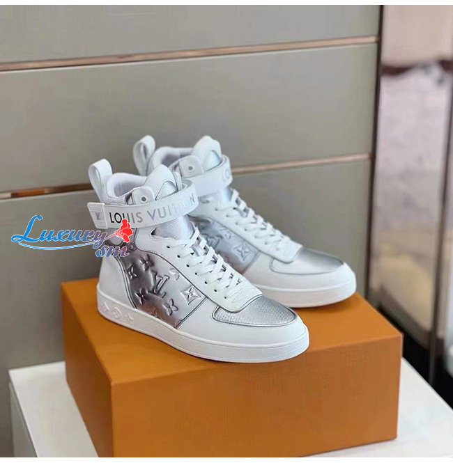 LOUIS VUITTON-1A95R4 루이비통 실버 모노그램 송아지 가죽 붐박스 스니커 부츠