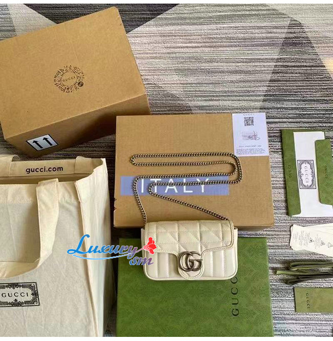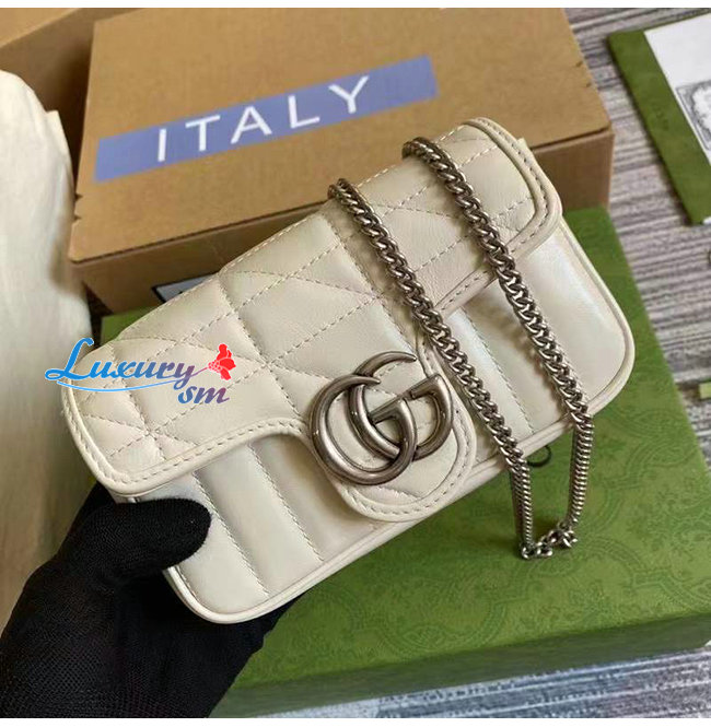 [스페셜오더]GUCCI-476433 9022 구찌 GG 마몽 화이트 가죽 수퍼 미니백