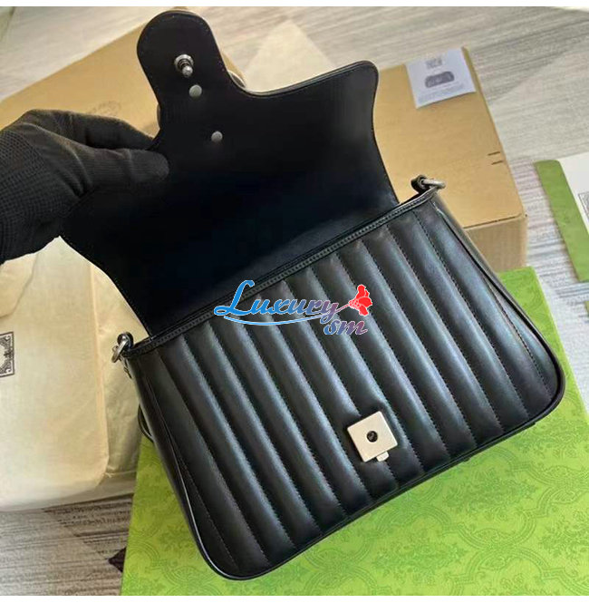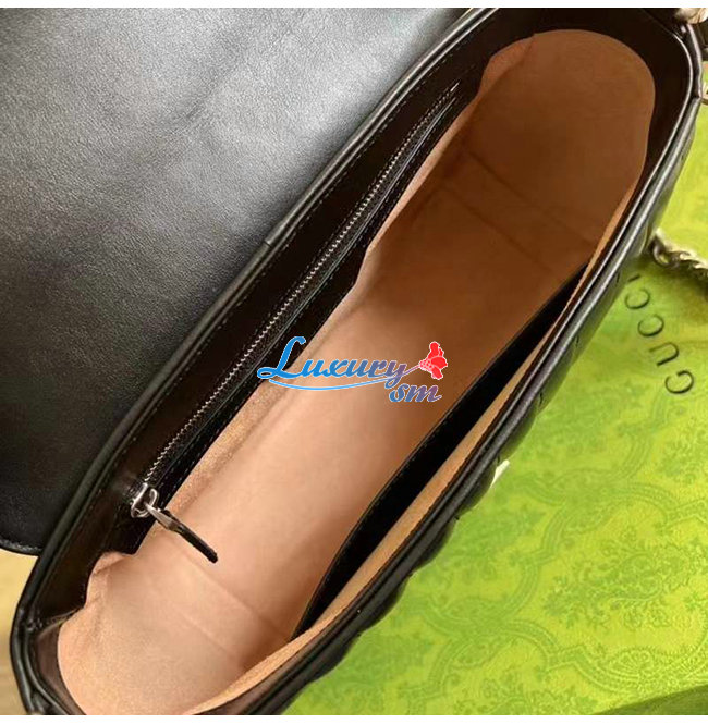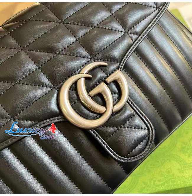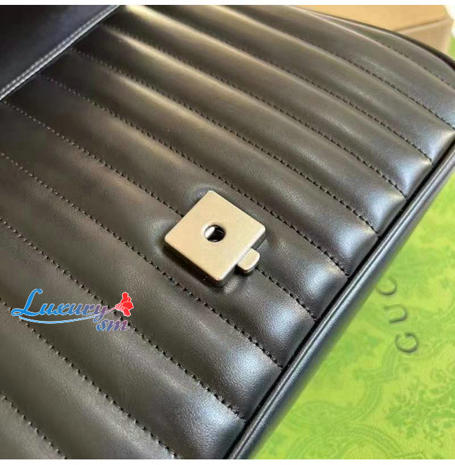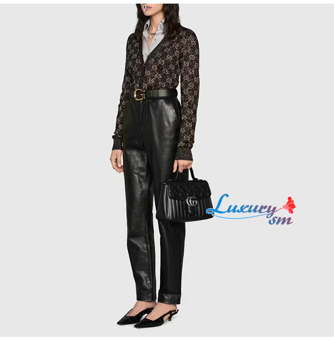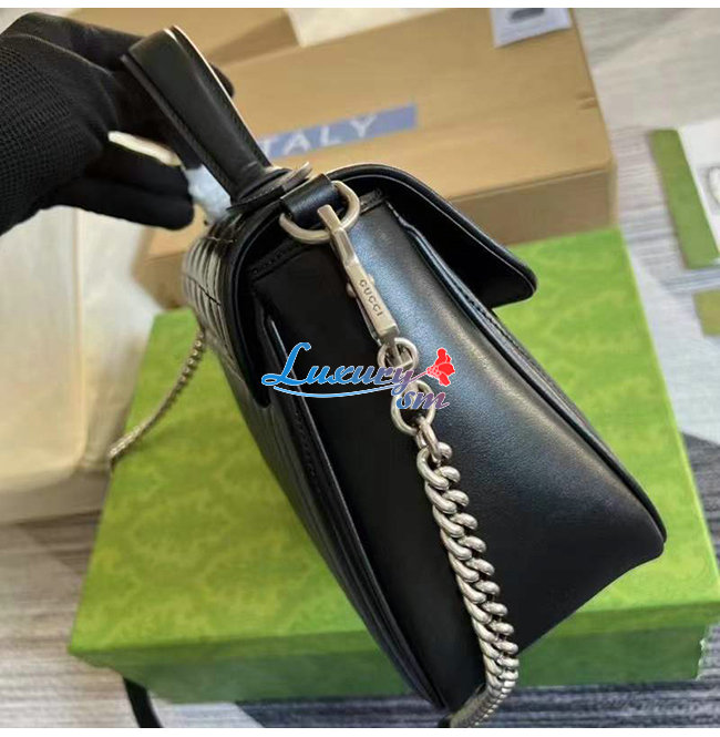 [스페셜오더]GUCCI-498110 8277 구찌 GG 마몽 블랙 사선형 마틀라세 가죽 스몰 탑 핸들백
