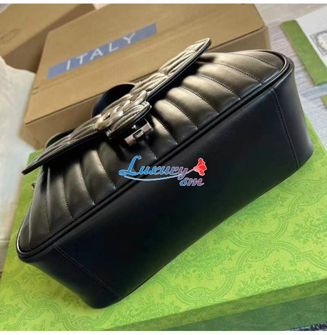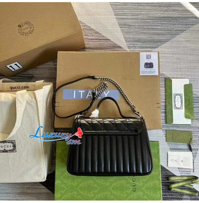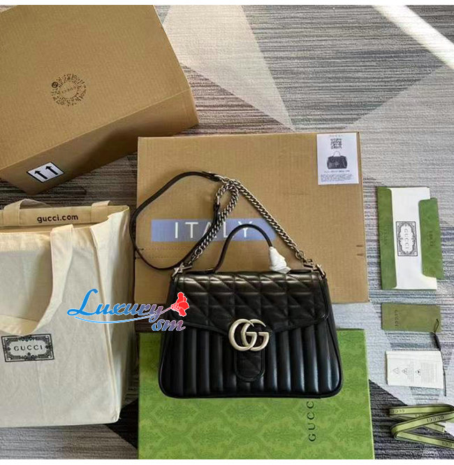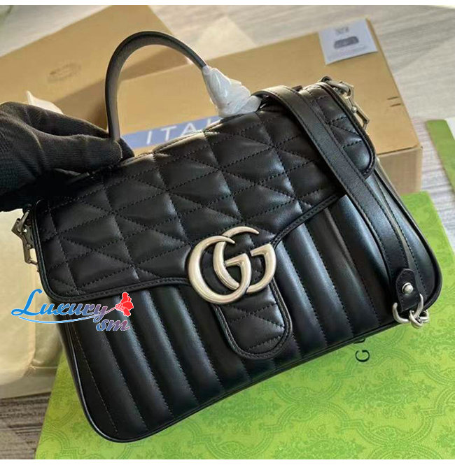 [스페셜오더]GUCCI-498110 1000 구찌 GG Marmont 블랙 마틀라세 가죽 탑 핸들 백
