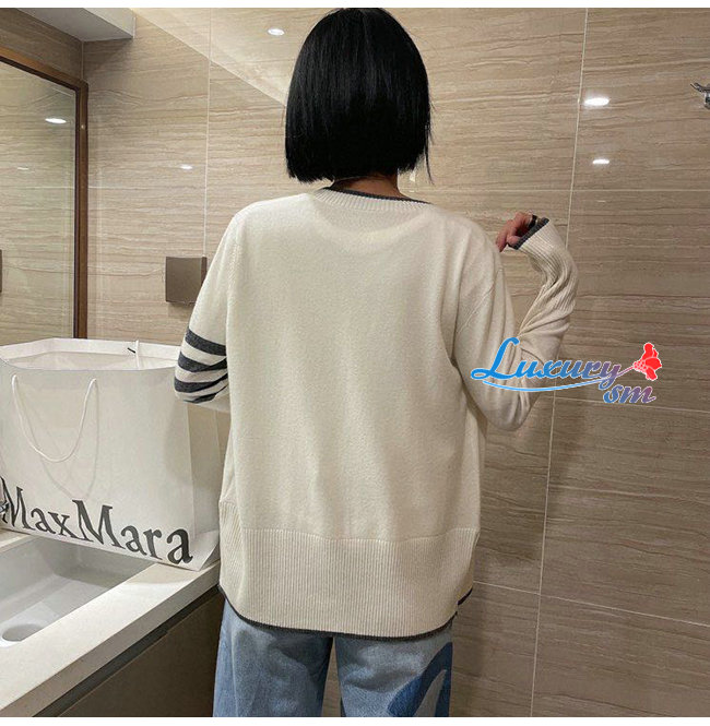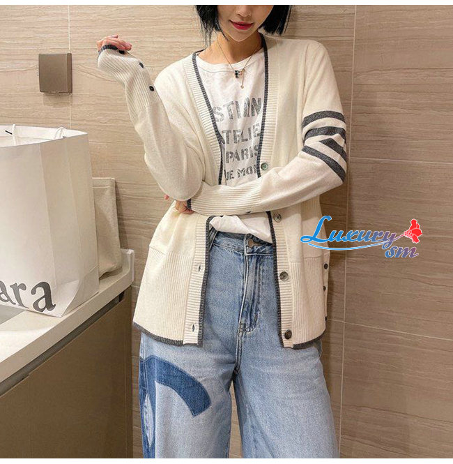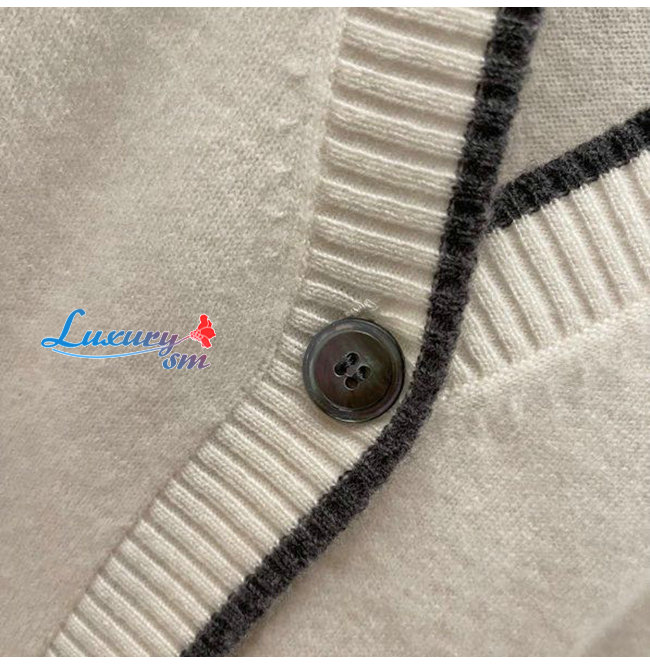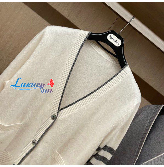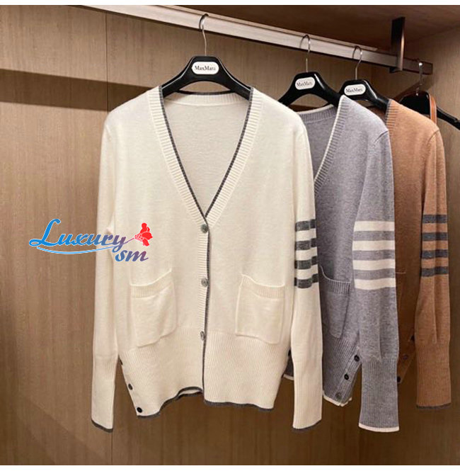 THOM BROWNE-121511 톰 브라운 베이지 니트 코튼 스트라이프 장식 가디건 여성용