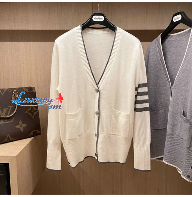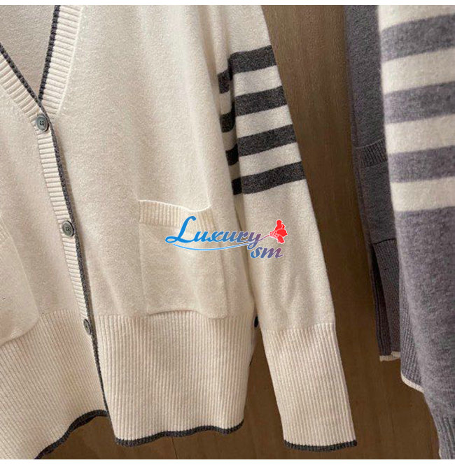 THOM BROWNE-121513 톰 브라운 그레이 니트 코튼 스트라이프 장식 가디건 여성용