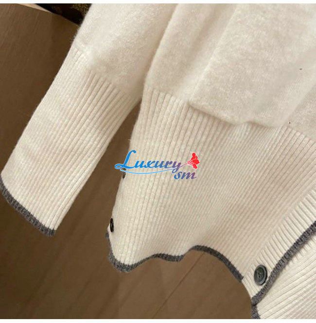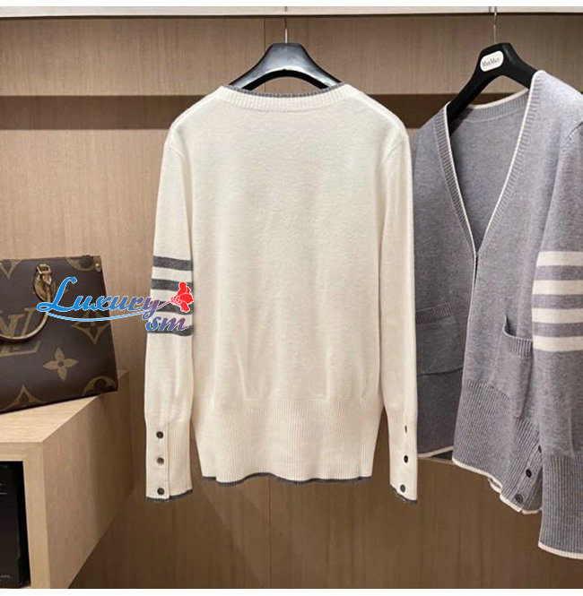 THOM BROWNE-121512 톰 브라운 화이트 니트 코튼 스트라이프 장식 가디건 여성용