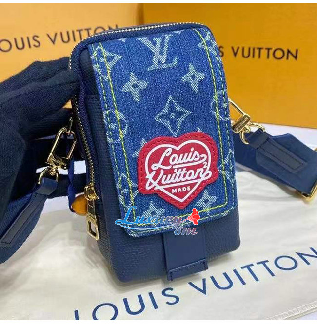 [스페셜오더]LOUIS VUITTON-M81060 루이비통 블루 모노그램 데님 플랩 더블 폰 파우치