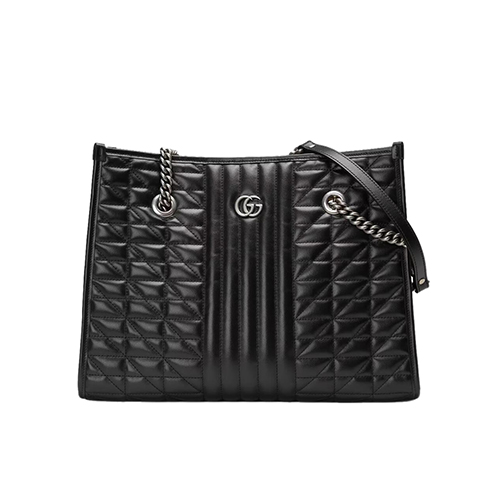 [스페셜오더]GUCCI-675796 1000 구찌 GG 마몽 블랙 가죽 미디업 토트백