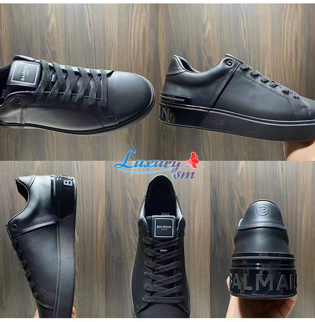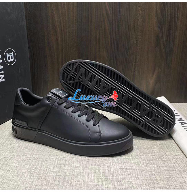 BALMAIN-VM1C244 발망 블랙 카프스킨 B-Court 스니커즈 남성용