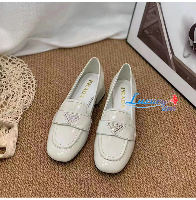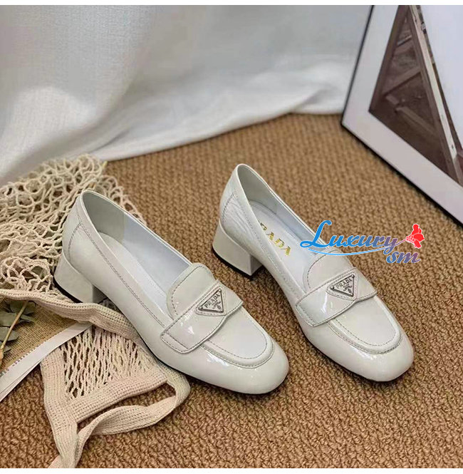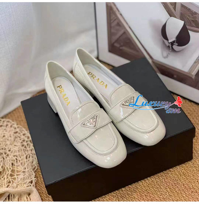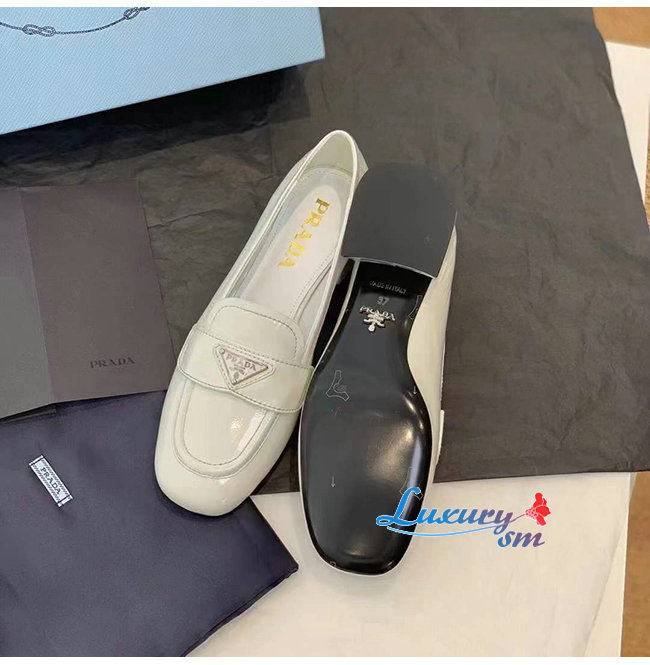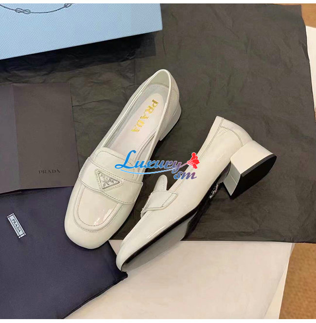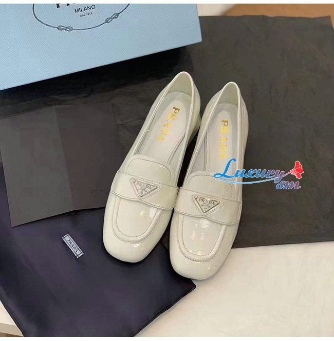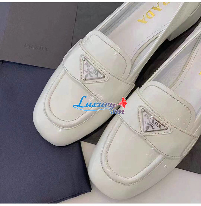PRADA-1D583M 프라다 화이트 페이턴트 가죽 로퍼