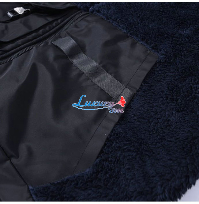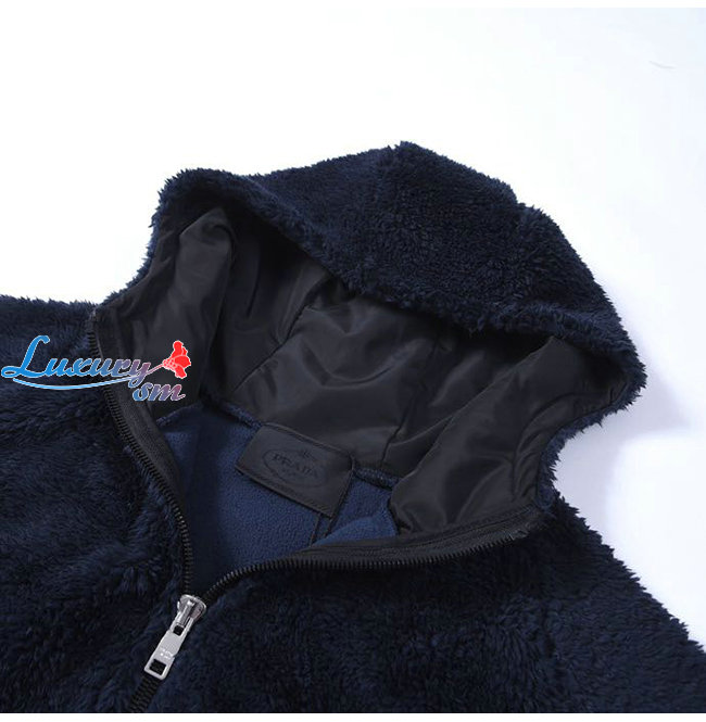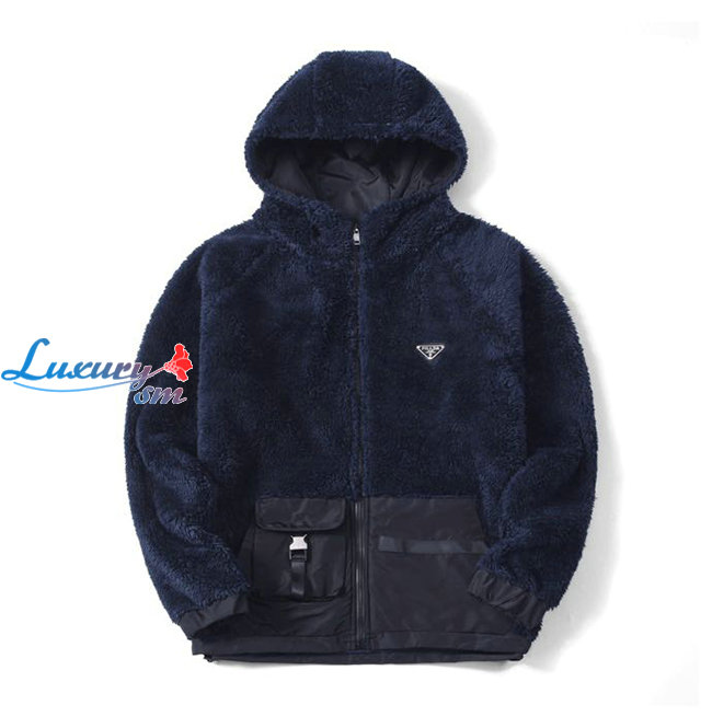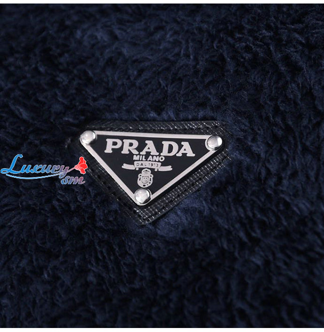 PRADA-122213 프라다 네이비 시어링 트라이앵글 로고 후드 쟈켓 남여공용