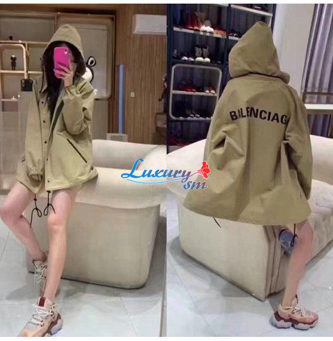 BALENCIAGA-122214 발렌시아가 베이지 나일론 프린트 장식 바람막이 후드 쟈켓 남여공용