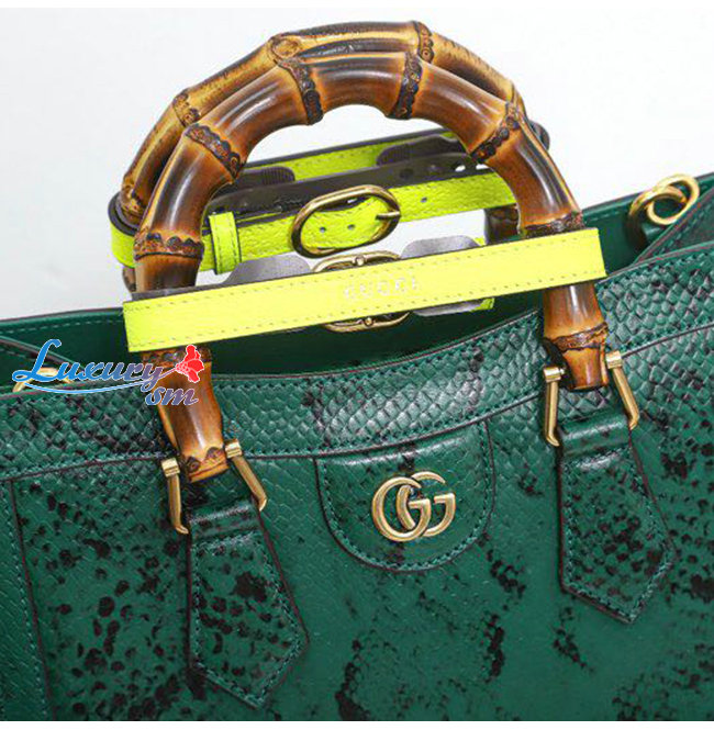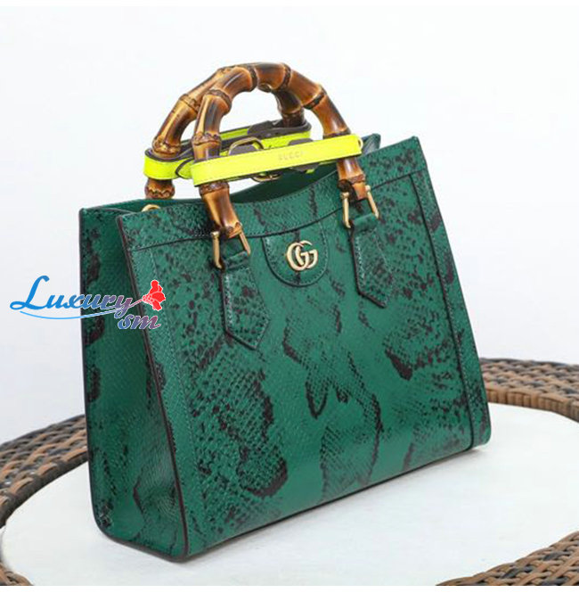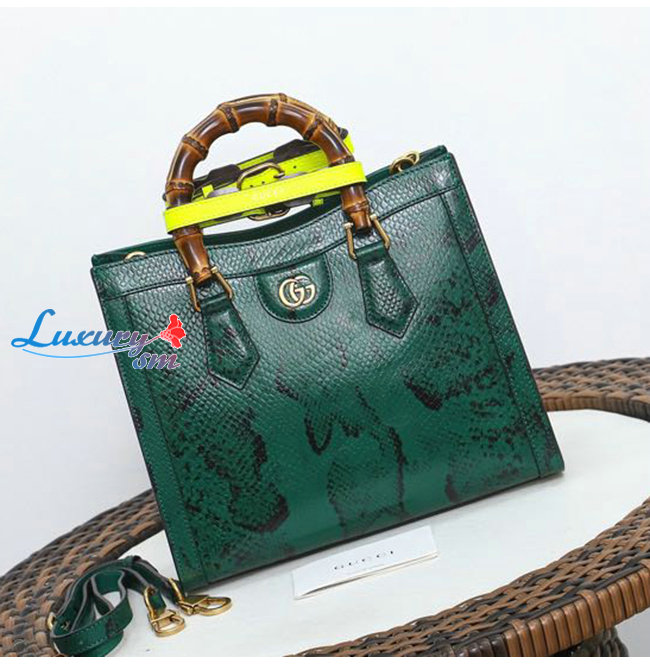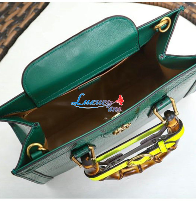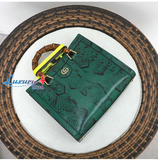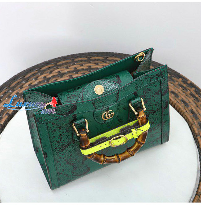 [스페셜오더]GUCCI-660195 3177 구찌 그린 파이톤 가죽 다이애나 뱀부 핸들 스몰 토트백