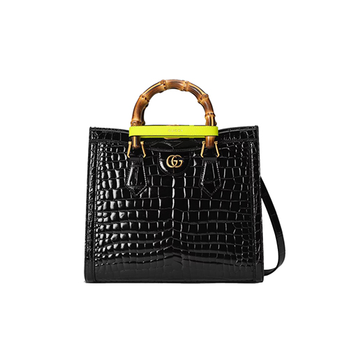 [스페셜오더]GUCCI-660195 1175 구찌 블랙 크로커다일 가죽 다이애나 뱀부 핸들 스몰 토트백
