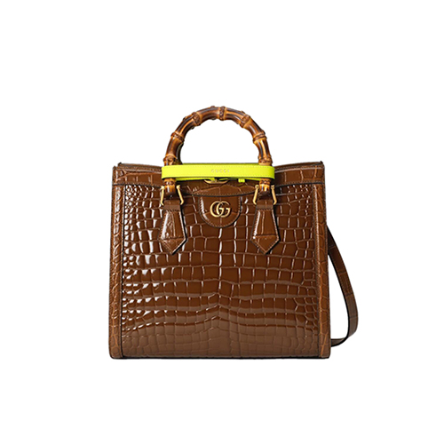 [스페셜오더]GUCCI-660195 2582 구찌 브라운 크로커다일 가죽 다이애나 뱀부 핸들 스몰 토트백