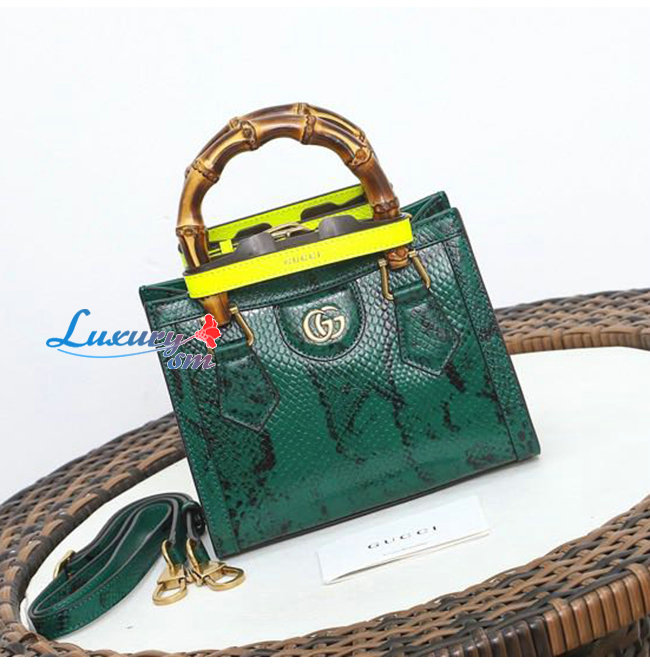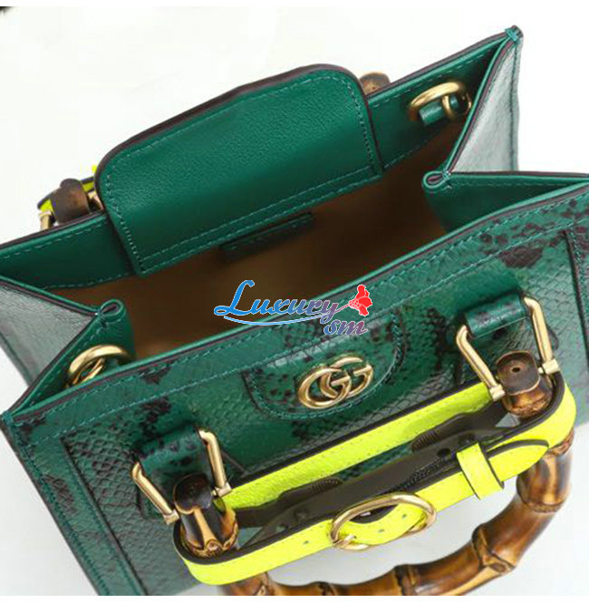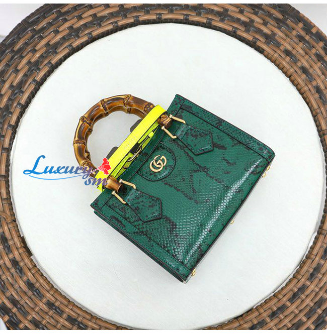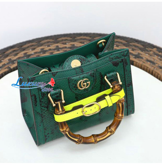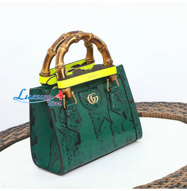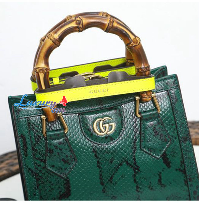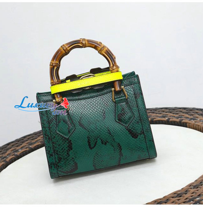 [스페셜오더]GUCCI-655661 3177 구찌 그린 파이톤 가죽 다이애나 뱀부 핸들 미니 토트백