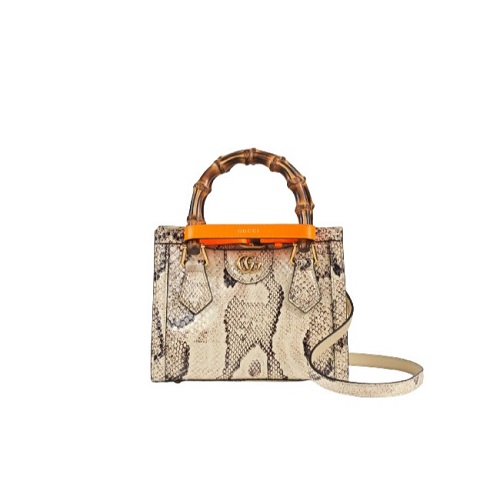 [스페셜오더]GUCCI-655661 9561 구찌 내추럴 다이애나 미니 뱀부 핸들 파이톤 토트백