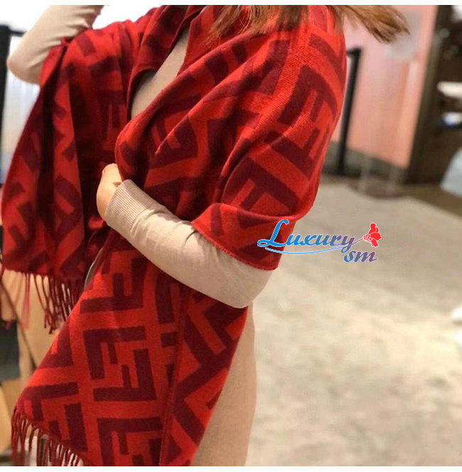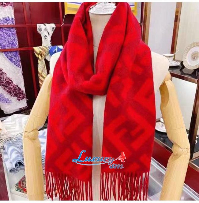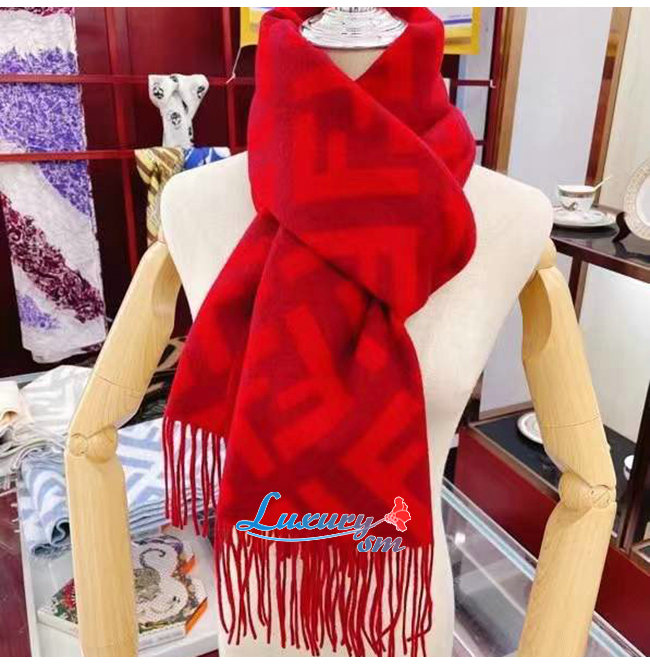 FENDI-FXT260 펜디 레드 캐시미어 FF 스카프