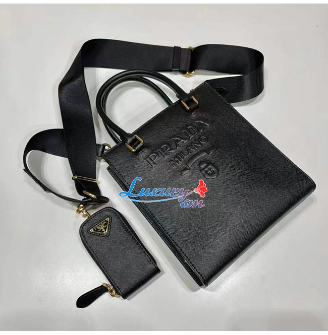 [스페셜오더]PRADA-1BA333 프라다 블랙 사피아노 가죽 쇼형 핸드백