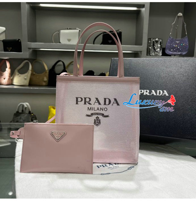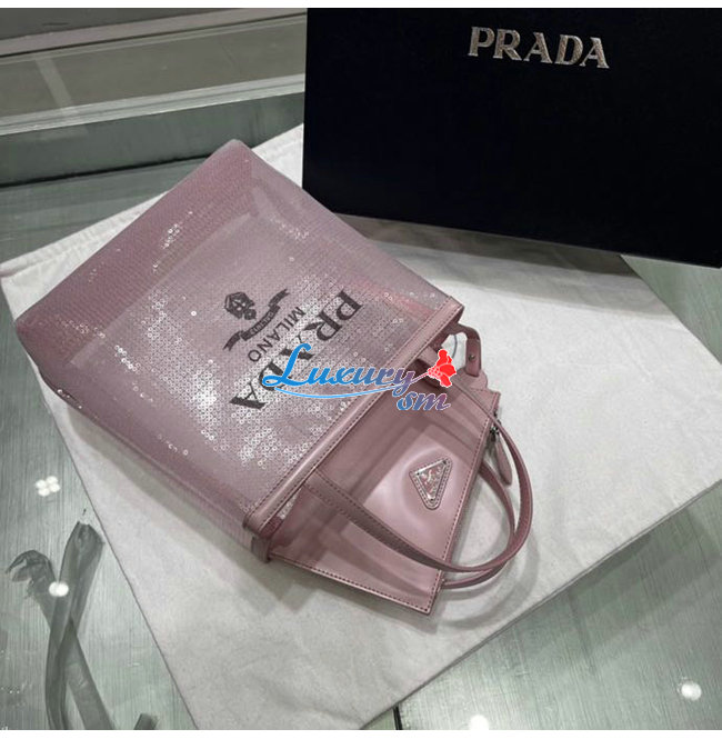 [스페셜오더]PRADA-1BG417 프라다 핑크 시퀸 메쉬 스몰 토트 백