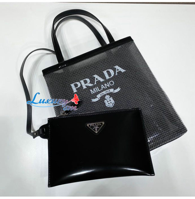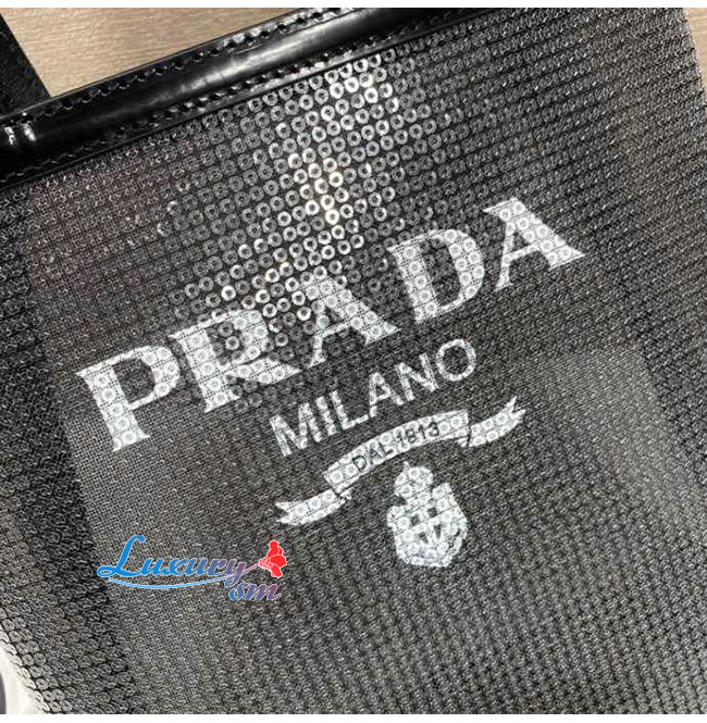 [스페셜오더]PRADA-1BG417 프라다 블랙 시퀸 메쉬 스몰 토트 백