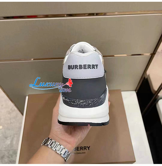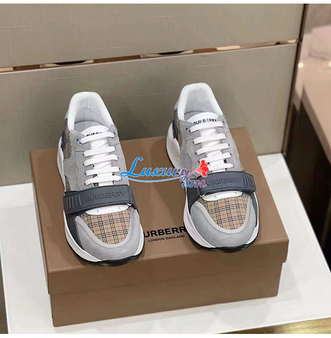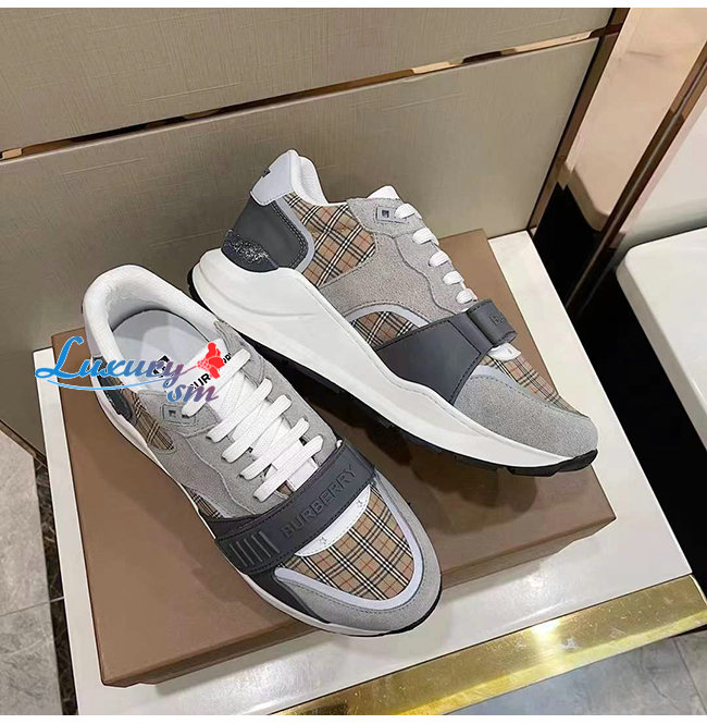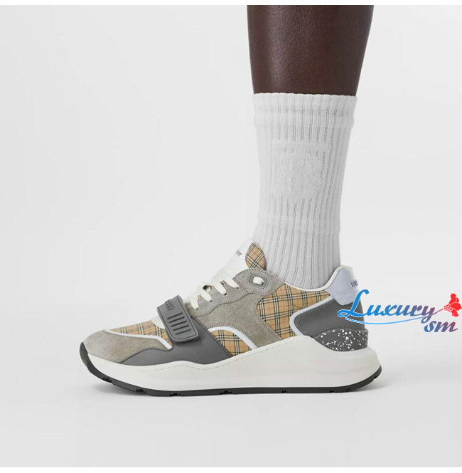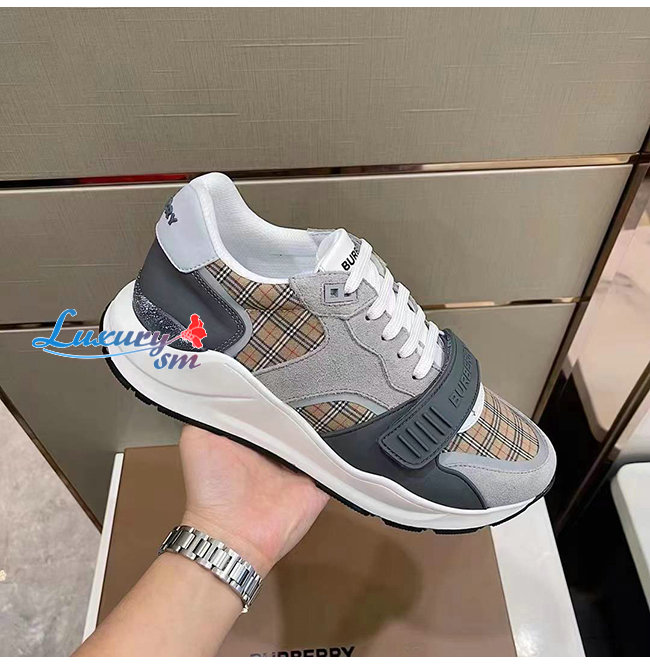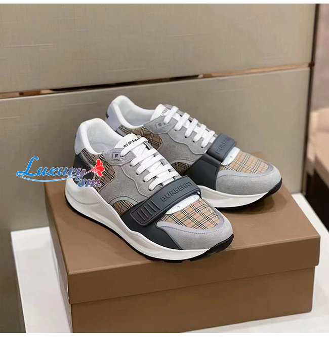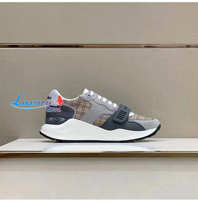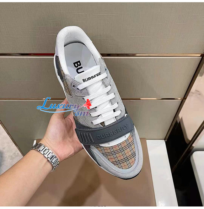 BURBERRY-80452951 버버리 그레이 체크 스웨이드 레더 스니커즈