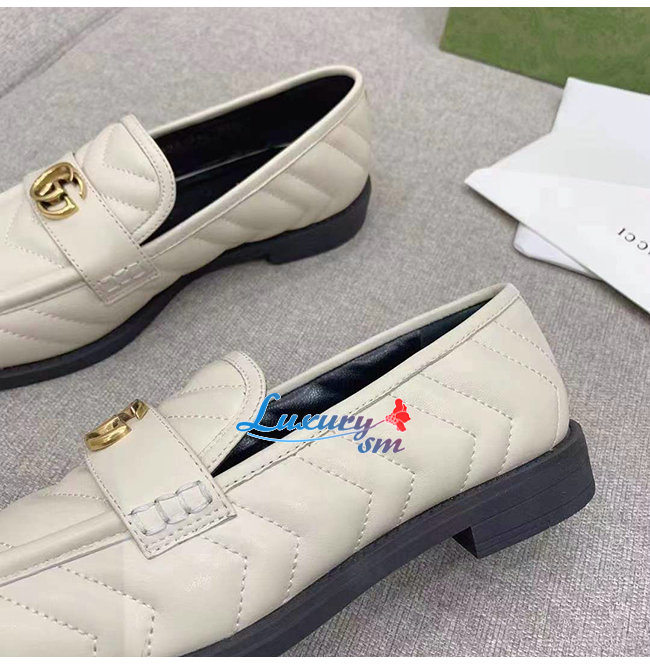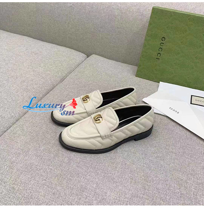 GUCCI-670399 9022 구찌 화이트 마틀라세 가죽 더블 G 로퍼