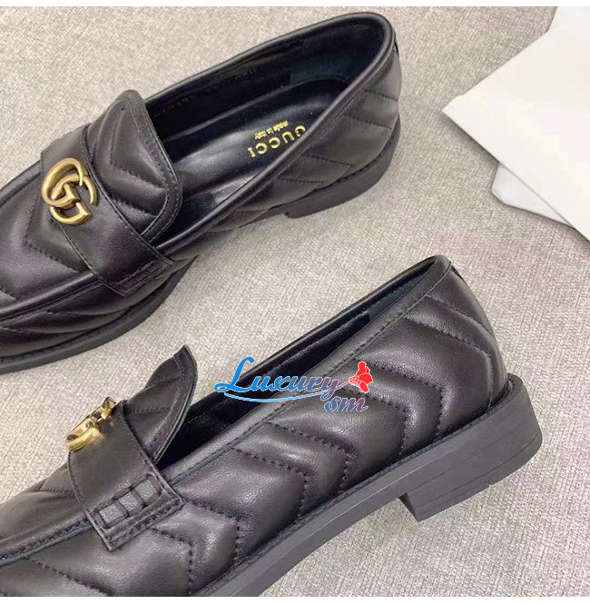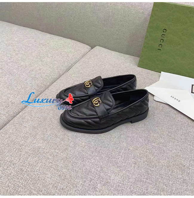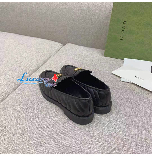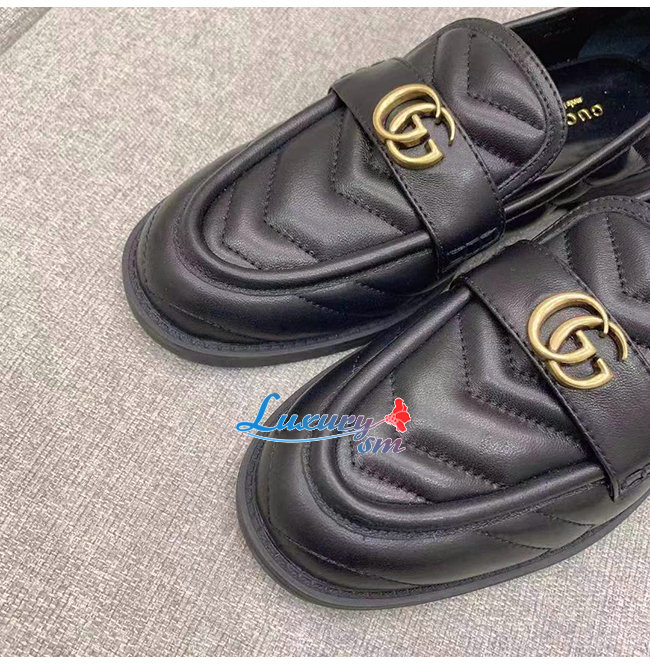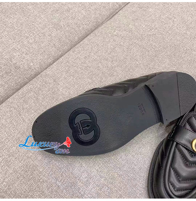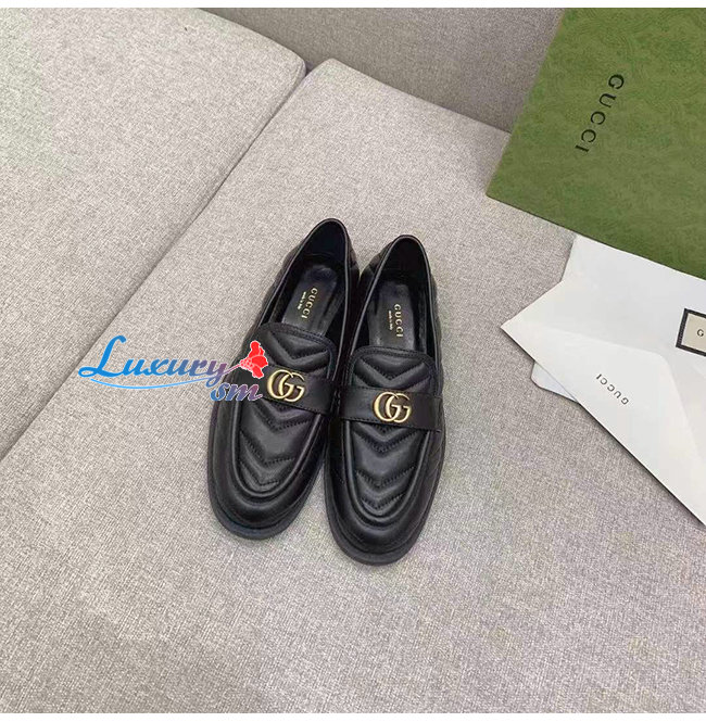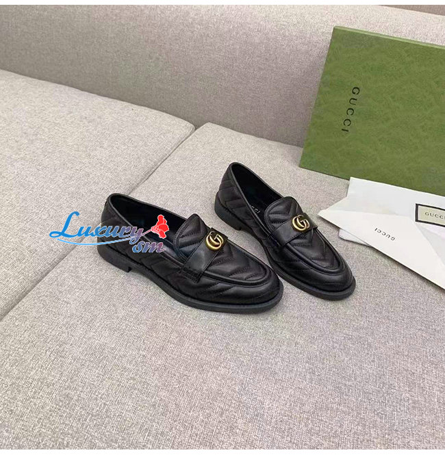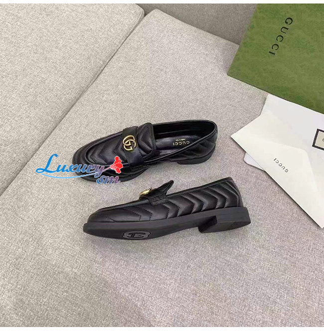 GUCCI-670399 1000 구찌 블랙 마틀라세 가죽 더블 G 로퍼
