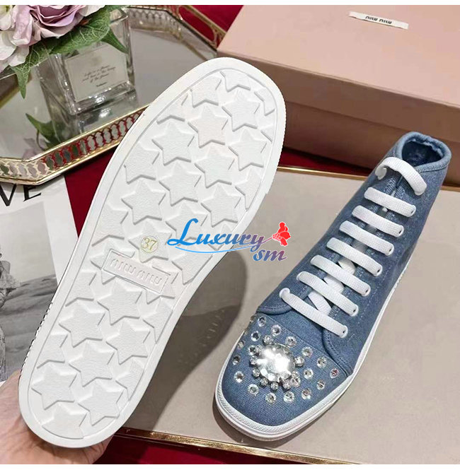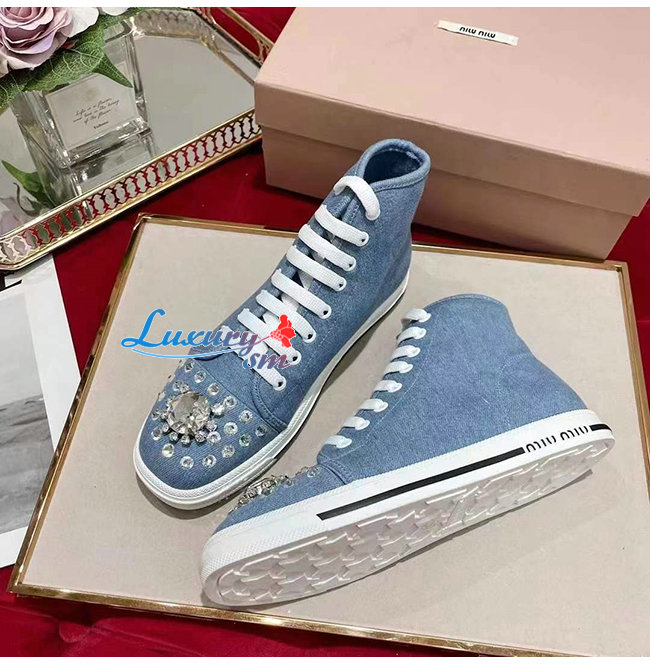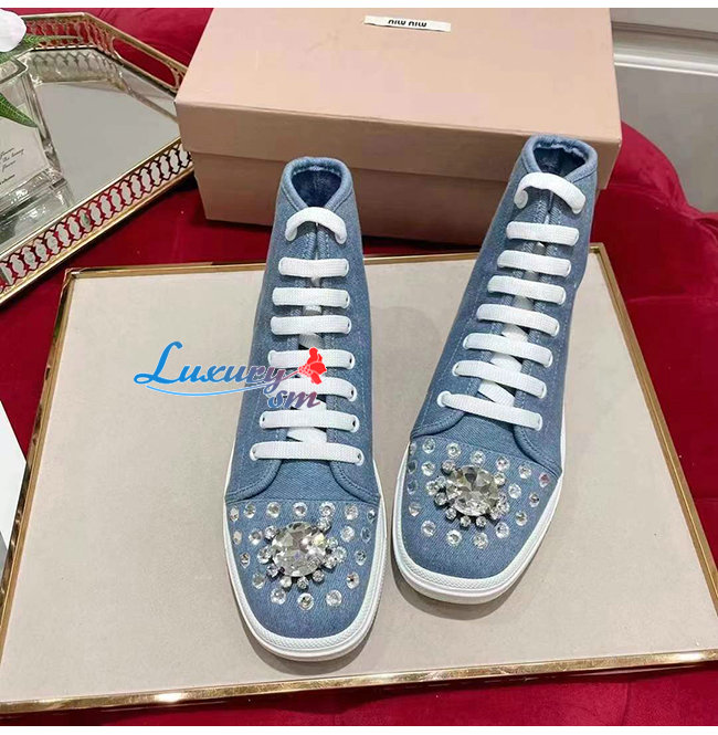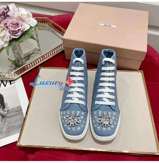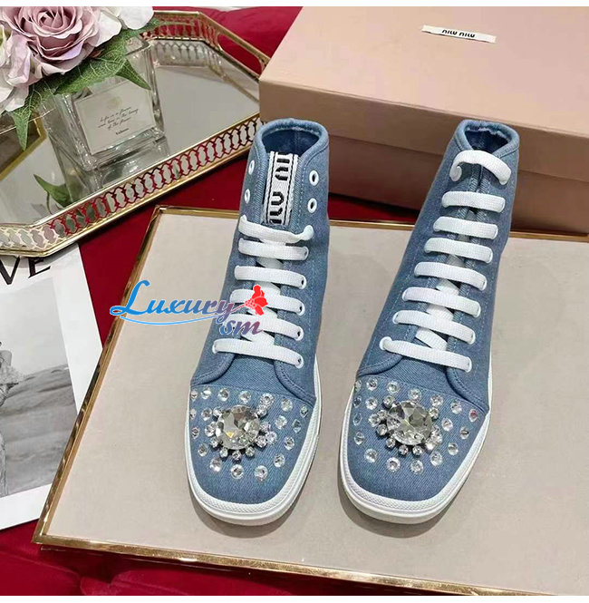 MIUMIU-5T489D 미우미우 블루 데님 하이탑 스니커즈