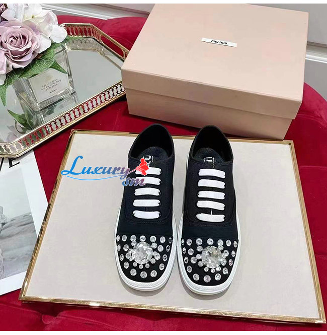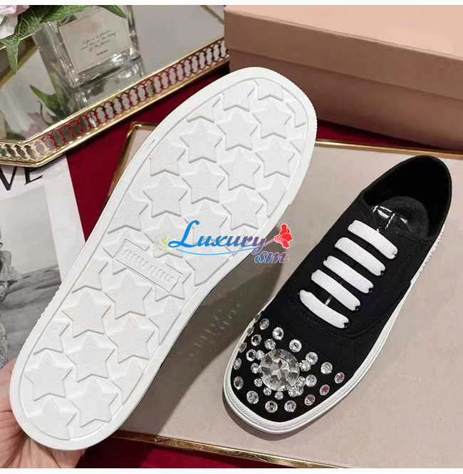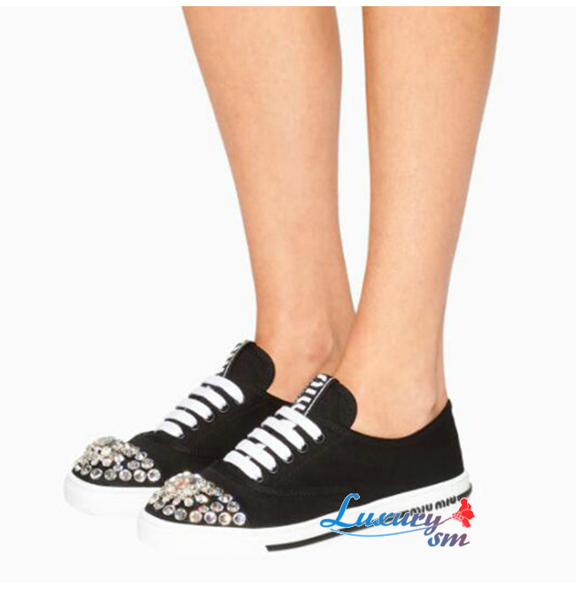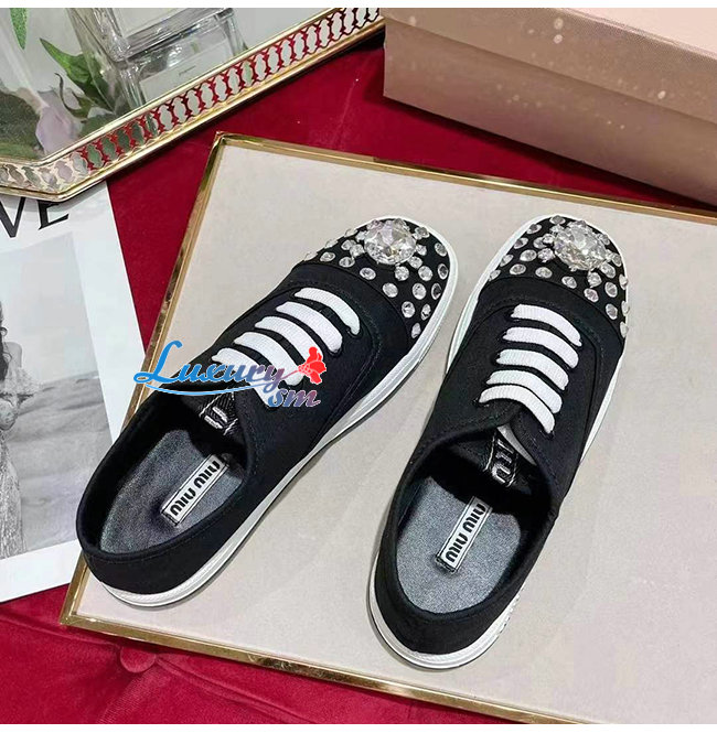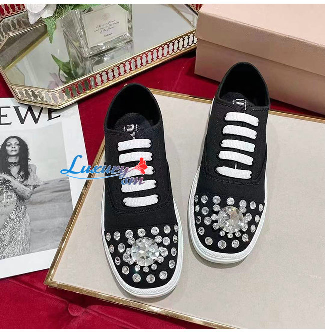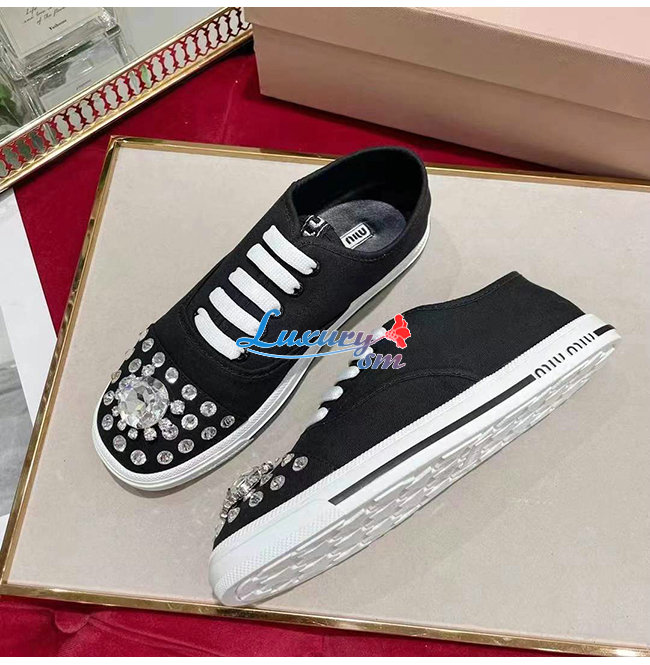 MIUMIU-5E450D 미우미우 블랙 코튼 개버딘 스니커즈