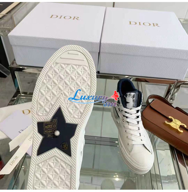 DIOR-KCK336 디올 화이트 엠보싱 송아지 가죽 WALK N DIOR STAR 스니커즈 여성용