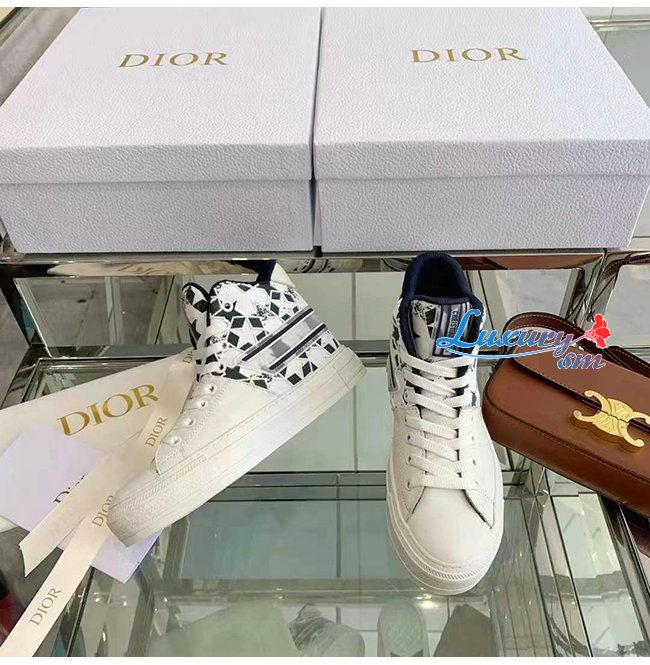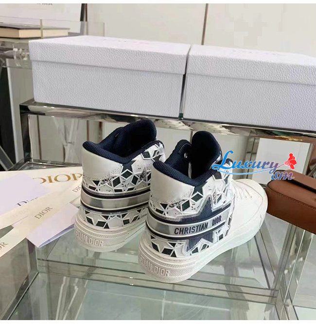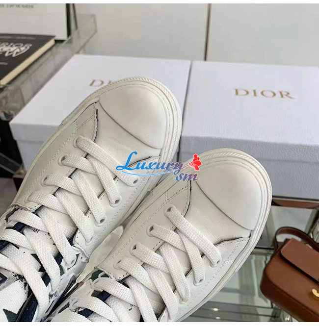 DIOR-KCK336 디올 화이트/블루 엠보싱 송아지 가죽 WALK N DIOR STAR 스니커즈 여성용