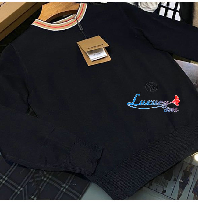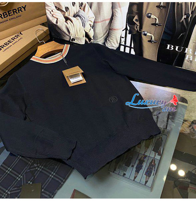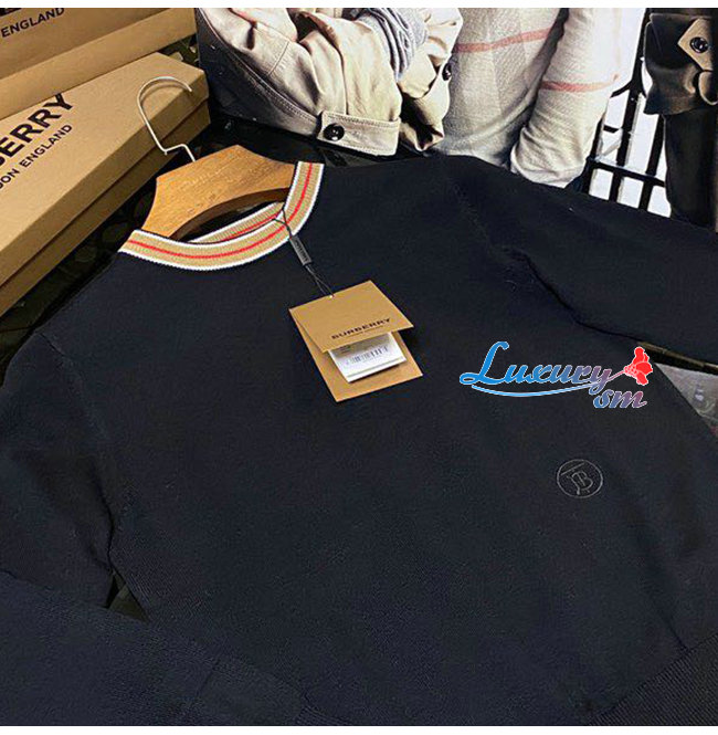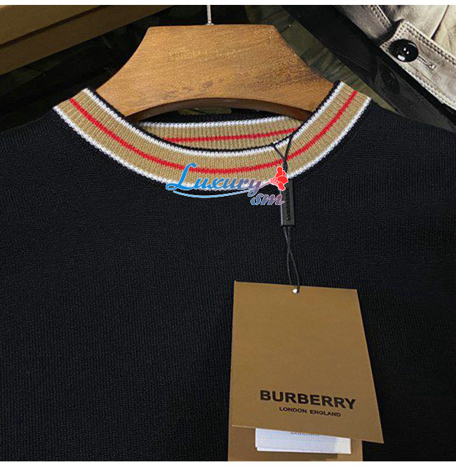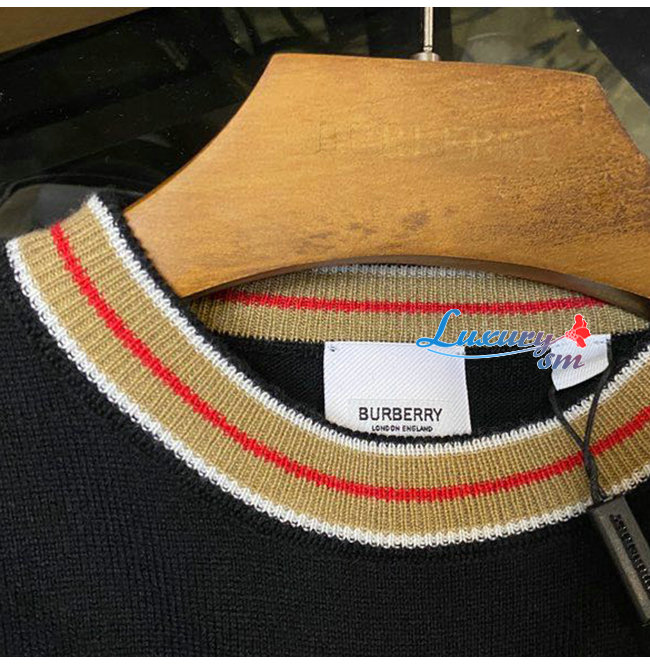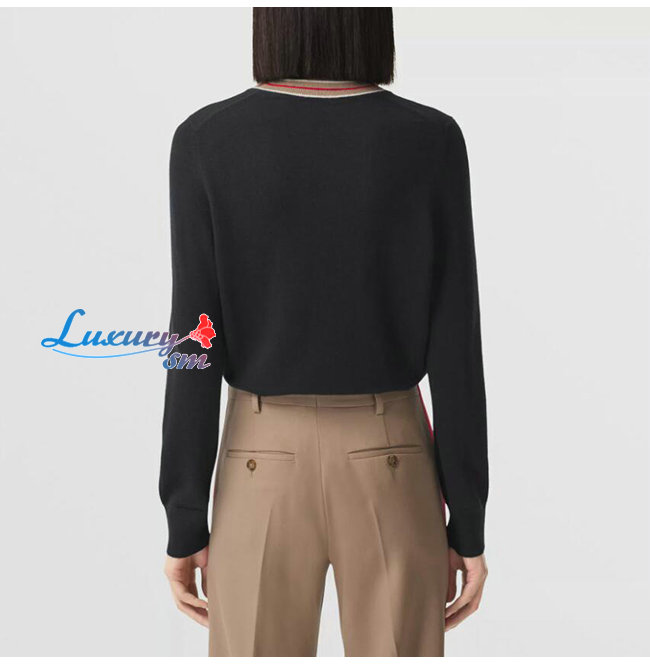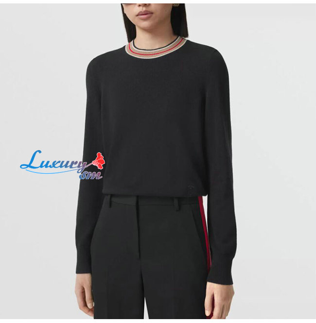 BURBERRY-80484281 버버리 블랙 스트라이프 디테일 캐시미어 스웨터
