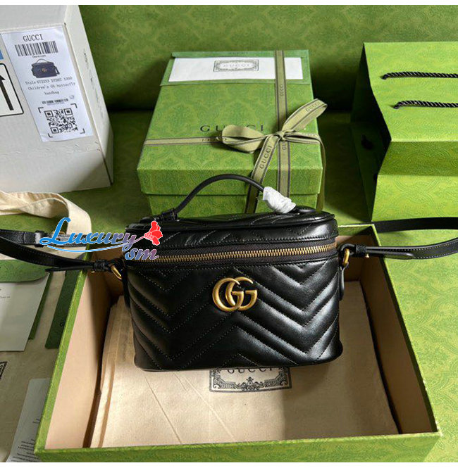 [스페셜오더]GUCCI-672253 1000 구찌 GG 마몽 블랙 마틀라세 가죽 미니백