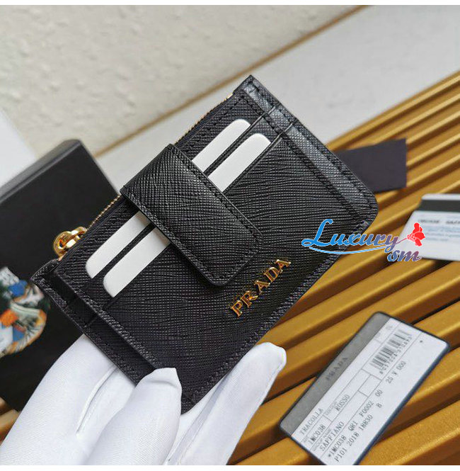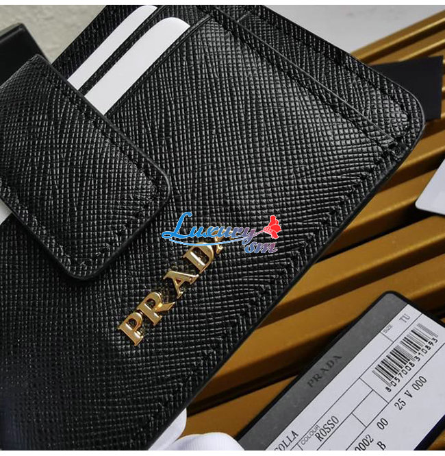 [스페셜오더]PRADA-1MC038 프라다 블랙 사피아노 메탈 로고 카드 지갑