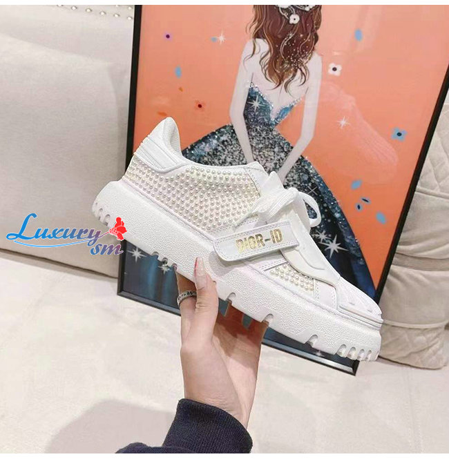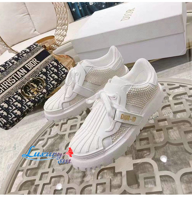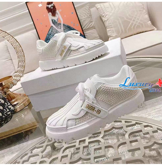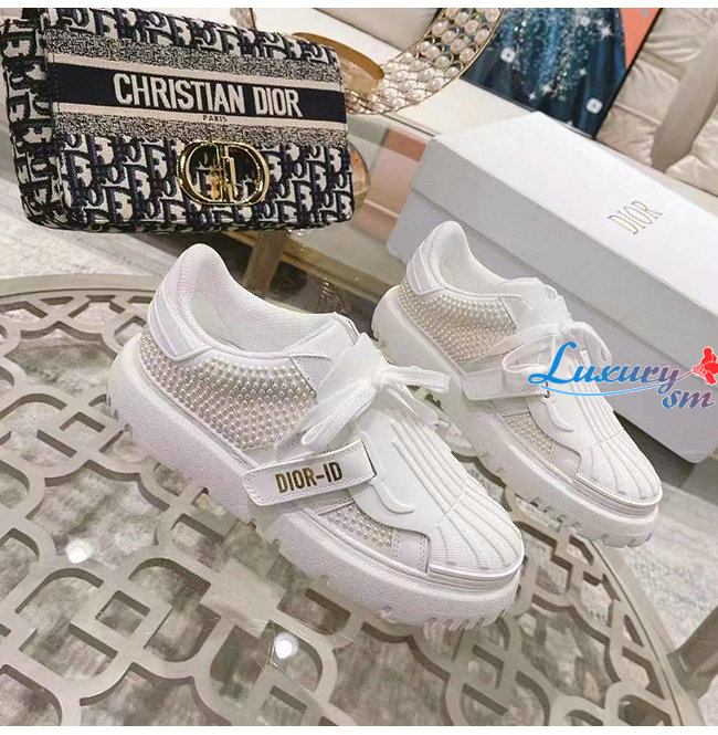 DIOR-KCK318 디올 화이트 송아지 가죽 레진 DIOR-ID 스니커즈 여성용