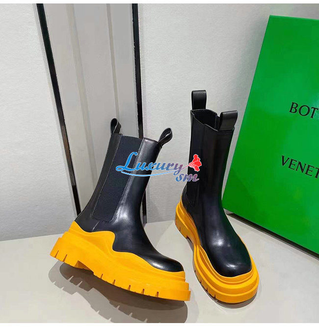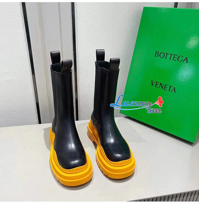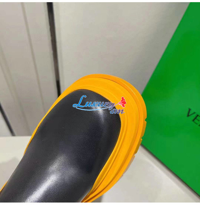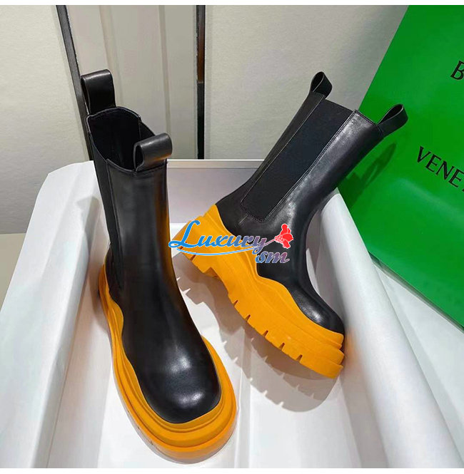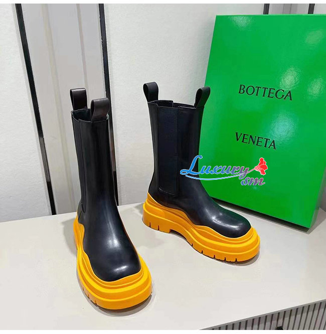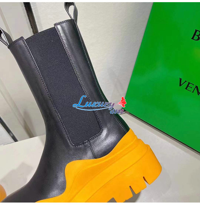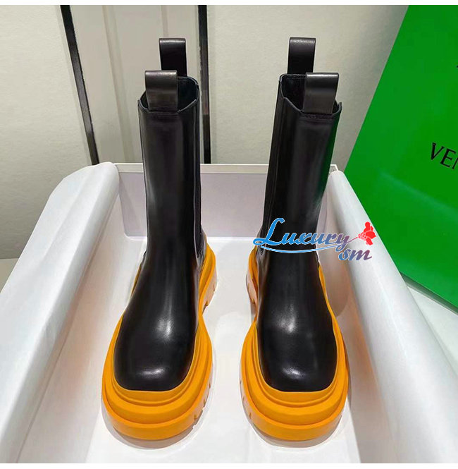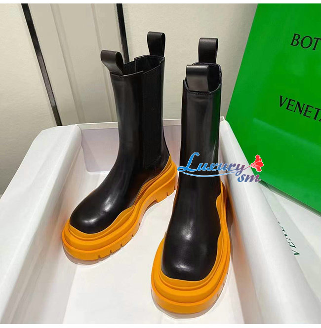 BOTTEGA VENETA-630297 보테가 베네타 블랙/탠저린 송아지 가죽 타이어 첼시 부츠
