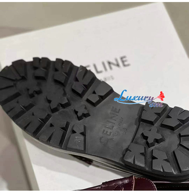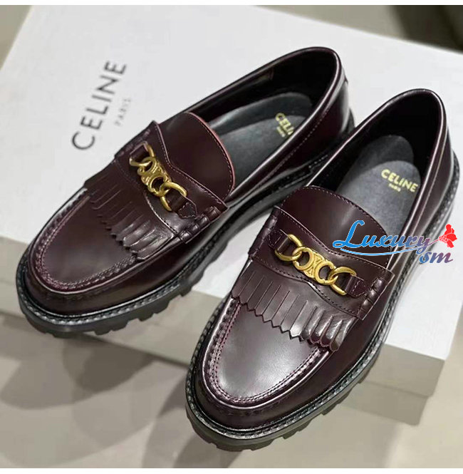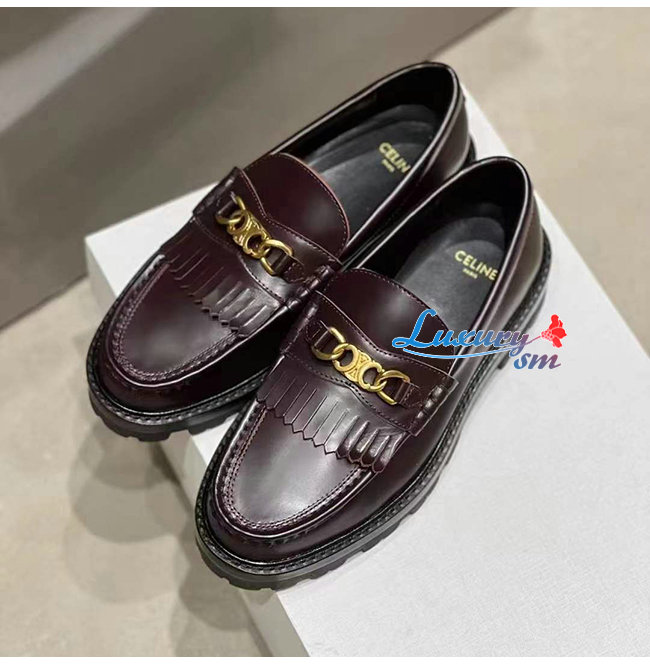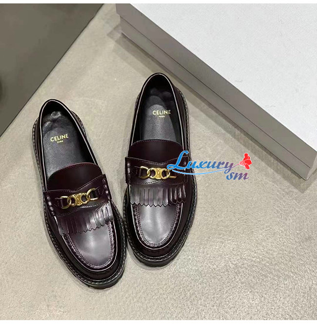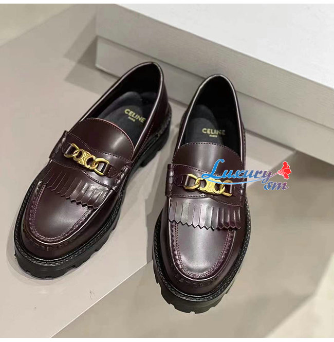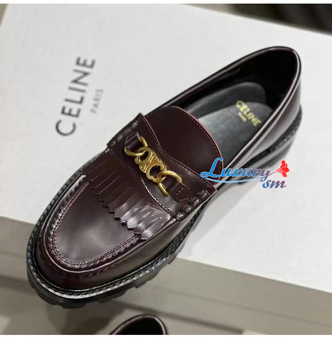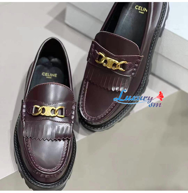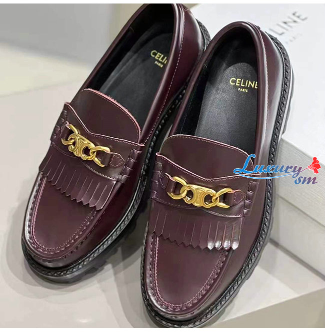 CELINE-344893 셀린느 버건디 소가죽 트리오페 체인 MARGARET 로퍼 여성용
