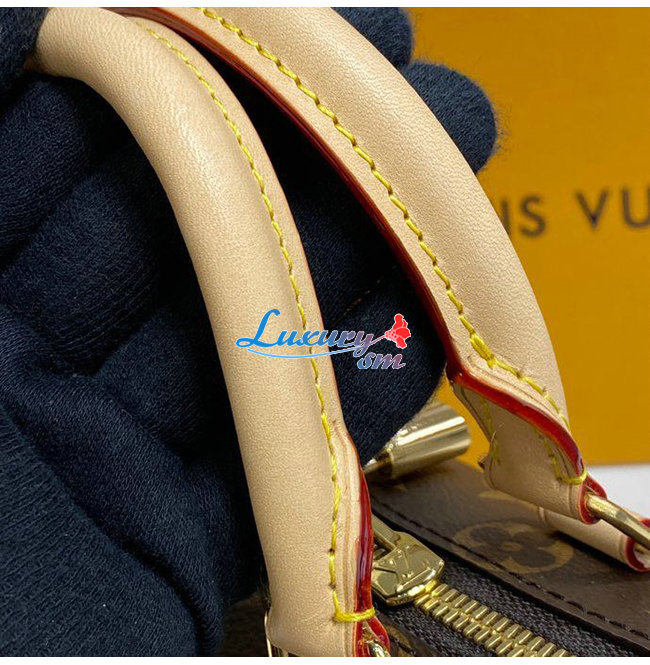 백 둥글게 만 상단 가죽 핸들 및 루이비통 시그