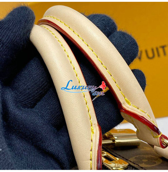 백 둥글게 만 상단 가죽 핸들 및 루이비통 시그