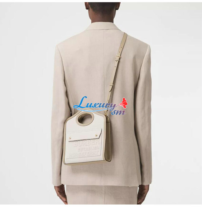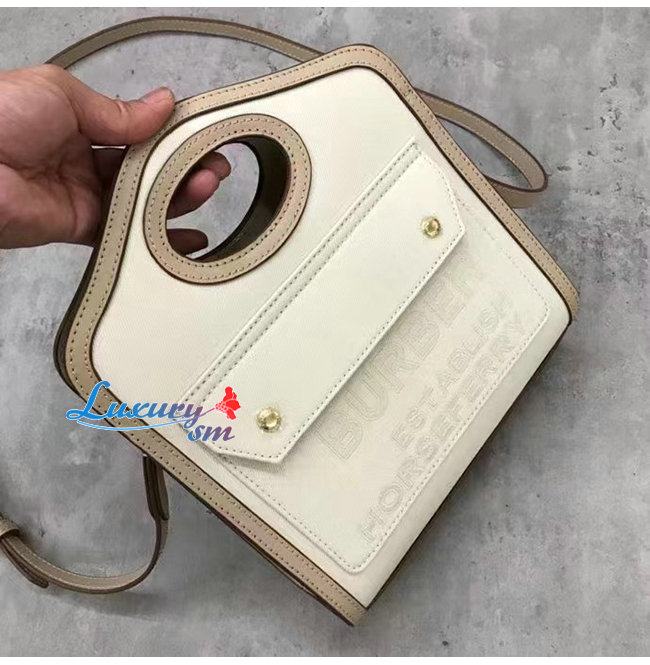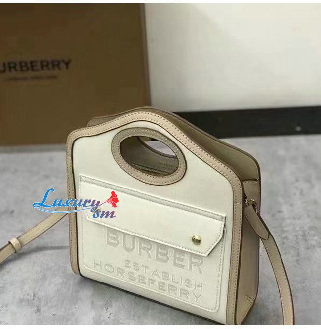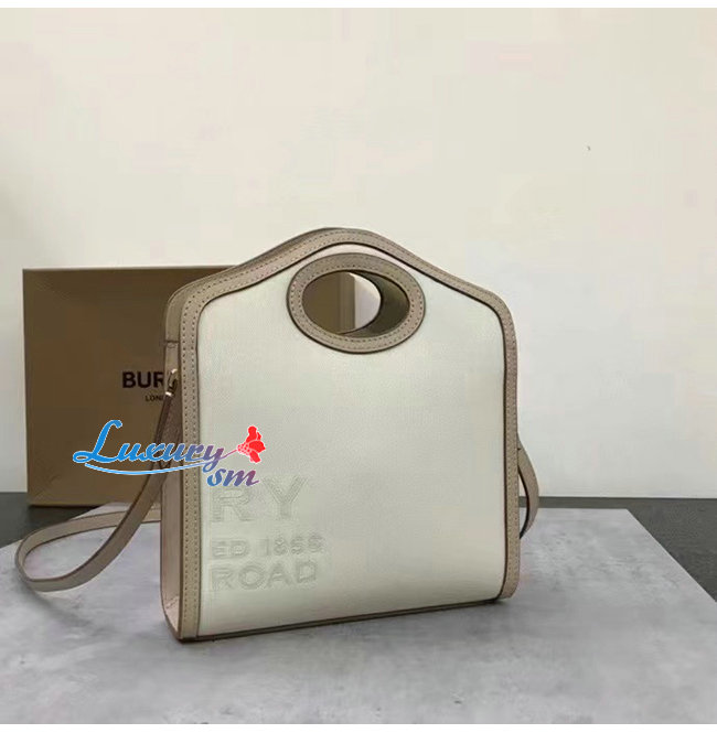 BURBERRY-80429951 버버리 에크루 미니 호스페리 리넨 코튼 캔버스 포켓 백