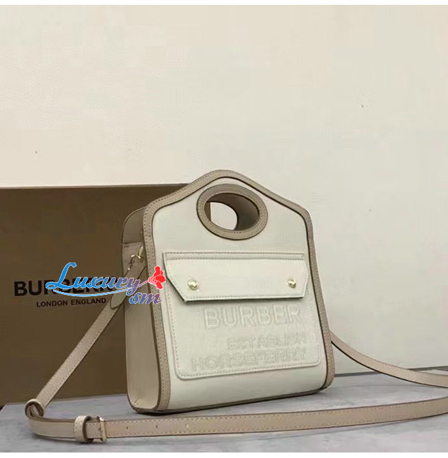 BURBERRY-80434931 버버리 페일 블루 미니 투톤 캔버스 레더 포켓 백