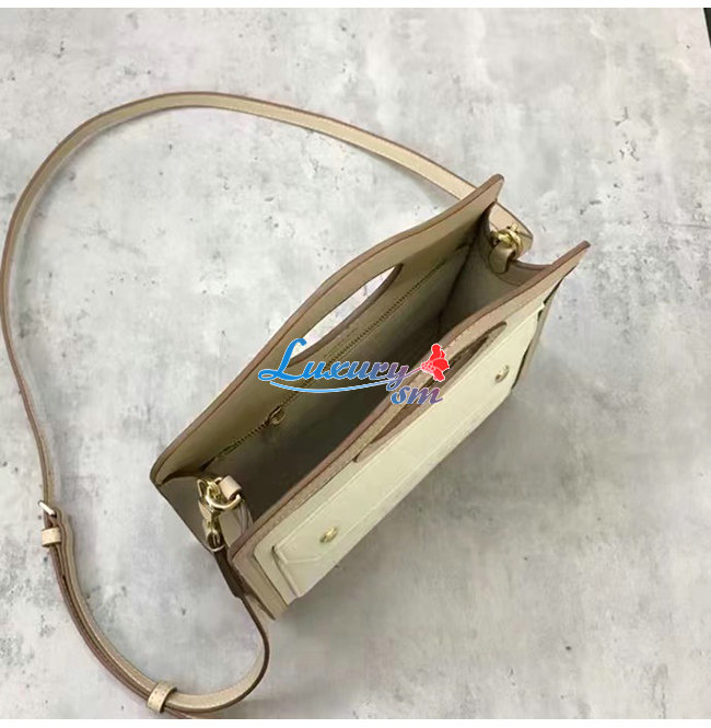 스티치 디테일의 가죽과 리넨 면 캔버스 소재로