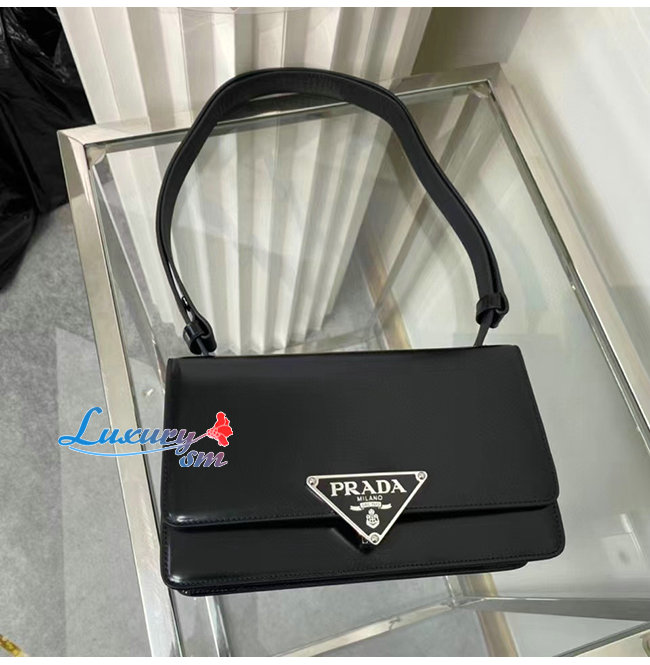 [스페셜오더]PRAD*-1BD321 프라다 블랙 엠블럼 브러시드 가죽 숄더 백