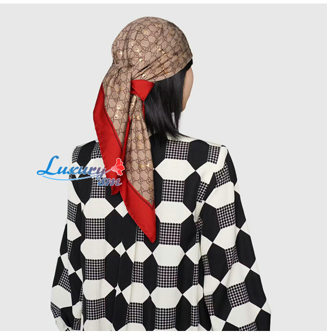GUCCI-662576 6475 구찌 레드 GG 프린트 홀스빗 실크 스카프