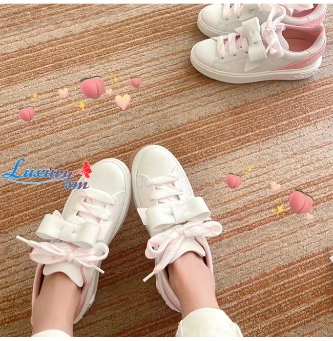 LV이니셜을 더한 리본 형태의 신발끈 장식으로 루
