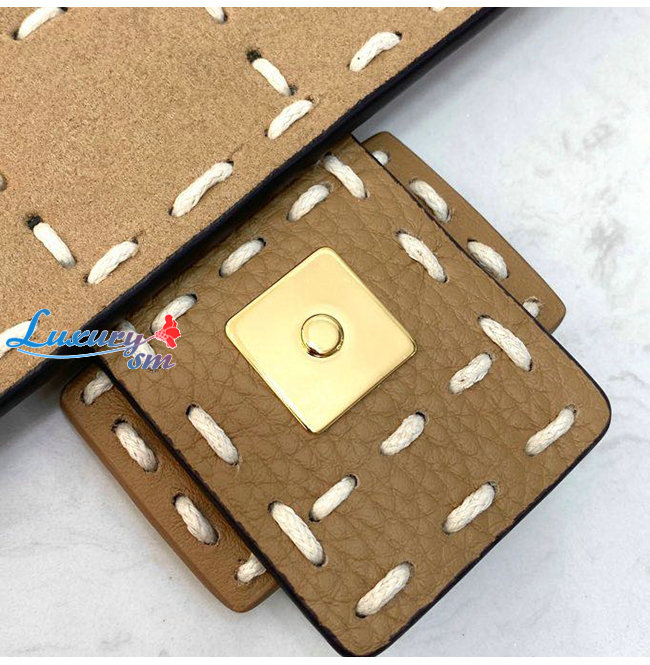 아이코닉 한 미디엄 바게트 백 베이지컬러의 부드 러운 메리노 양가죽 소재. 오버사이즈 핸드 스티칭과 FF 클래스프 장식 앞면 플랩, 마그네틱 클래스프, 톤온톤 가죽 트리밍,내 부 수납공간, 지퍼 포켓과 골드 피니시 메탈웨어. -재구매율 100% 단골들로 검증된 홍콩명품럭셔리즘