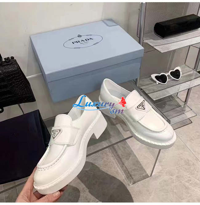 PRADA-1D246M 프라다 화이트 초콜릿 브러시드 가죽 로퍼