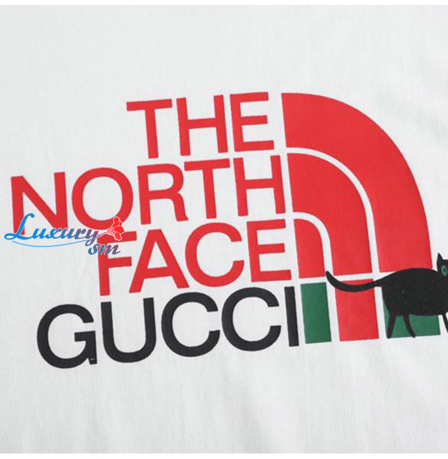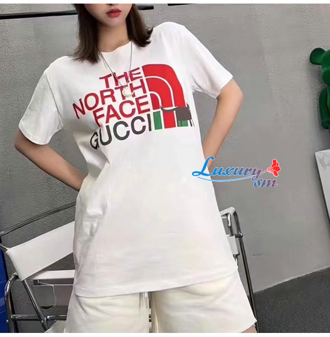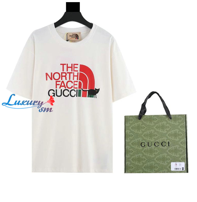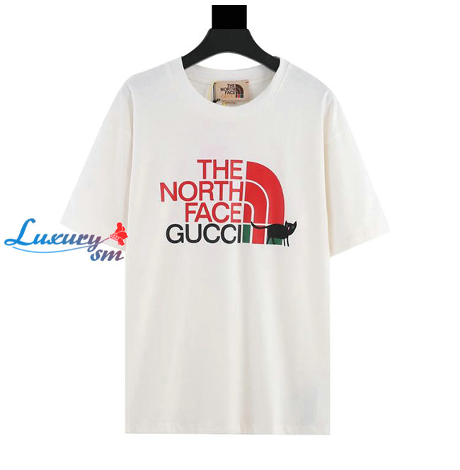 GUCC*-02229 구찌 화이트 구찌 X 노스페이스 콜라보 프린트 장식 티셔츠 남여공용
