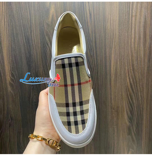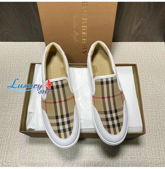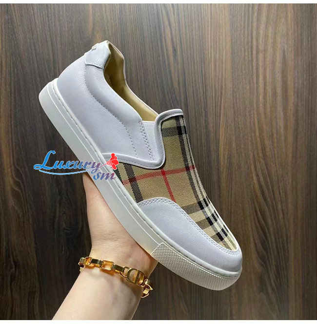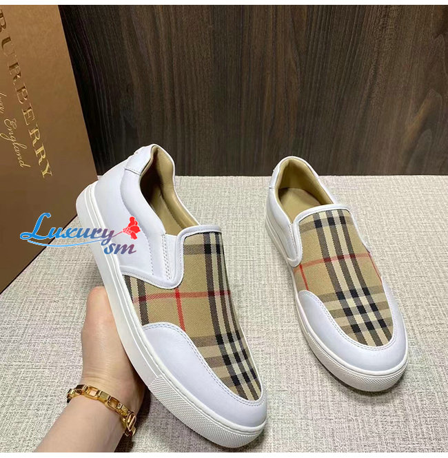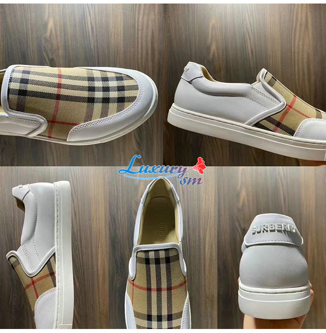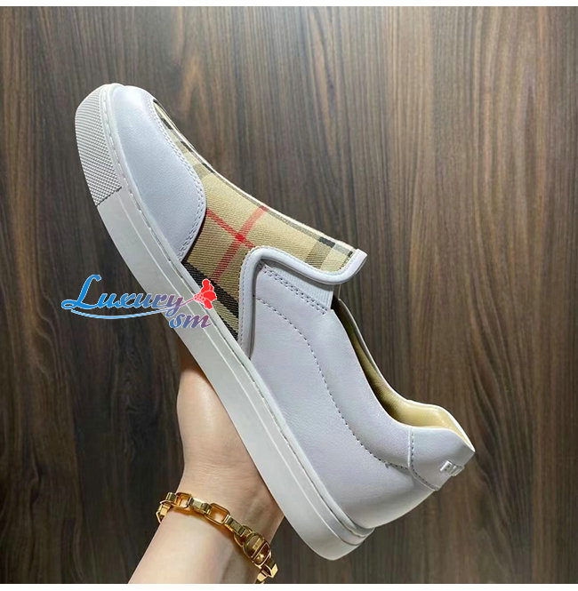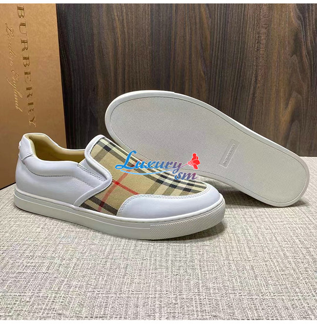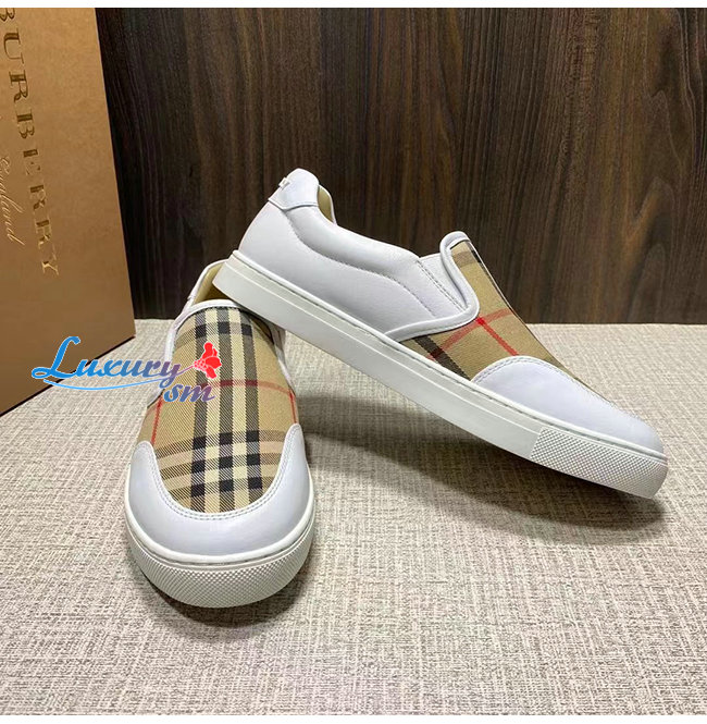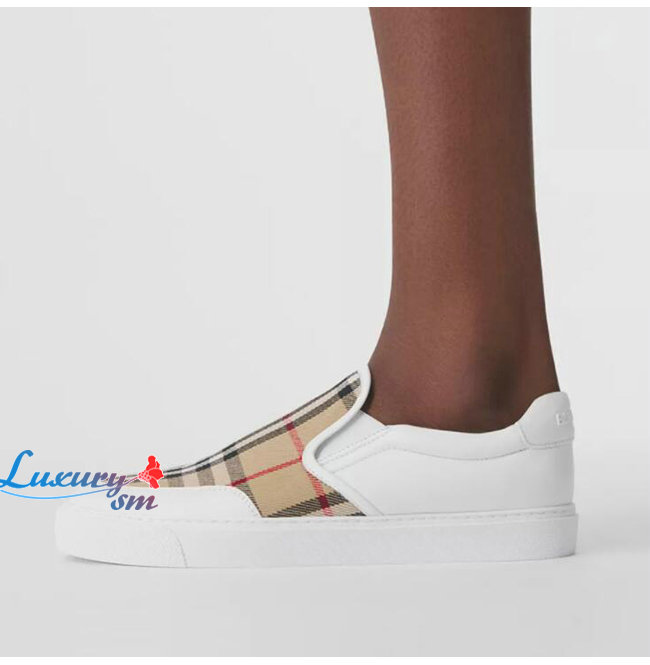 BURBER**-80432121 버버리 화이트 레더 빈티지 체크 슬립온 스니커즈