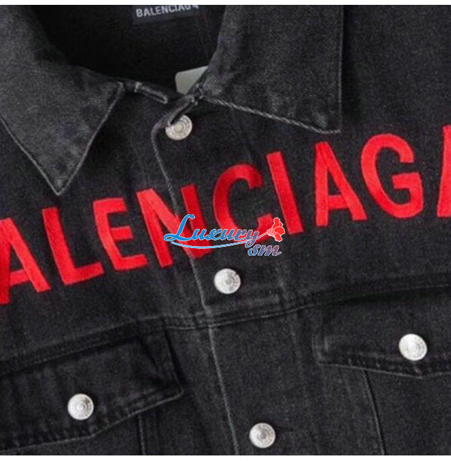 BALENCIA**-03132 발렌시아가 블랙 BALENCIAGA 아플리케 장식 데님 셔츠 남여공용