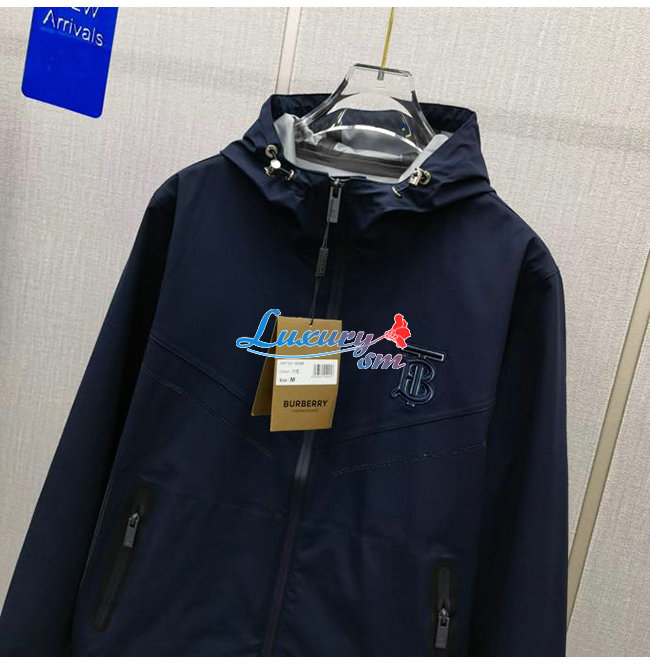 BURBER**-03119 버버리 네이비 TB 로고 아플리케 장식 바람막이 후드 재킷 남성용