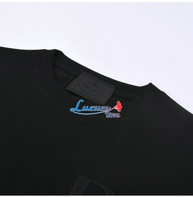 PRAD*-030810 프라다 블랙 PRADA 아플리케 장식 티셔츠 남여공용